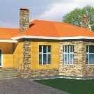 يتم بناء منزل من طابق واحد لزيادة المقاومة للزلازل باستخدام تقنية الإطار – الجدران في الزوايا ، العلوية والسفلية لها دعم إضافي من الهياكل الخرسانية المسلحة ذات المقطع المربع ، على شكل خط متوازي طويل جدًا.