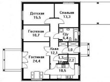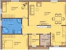 تم تخصيص غرفة المعيشة وتناول الطعام والمطبخ بشكل مشابه للإصدار السابق ، وهذه المرة بلغت 28.8 و 9 (باستثناء الشريط لمجموعة مطبخ كاملة) متر مربع. م. المخزن في المطبخ – 3.3 متر مربع. المنزل لديه شرفة. يوجد شرفة مجاورة أو مكان للسقيفة تمتد إلى ما وراء الحد الخارجي من إحدى الزوايا. بشكل عام ، يتداخل كلا الخيارين مع بعضهما البعض..