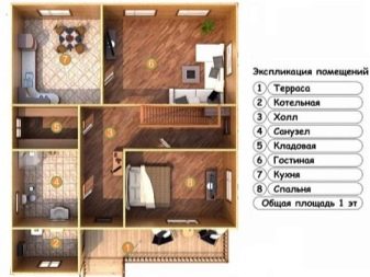 المخرج المؤقت هو ترتيب الطابق السفلي ، والذي ينص على نقل جميع مباني المكاتب. (ورشة ، جراج ، غرفة رياضية ، قبو ، غرفة ضخ وغلاية في نفس الغرفة ، إلخ). ثم في الطابق الأول سيكون هناك غرف نوم ومطبخ وغرفة معيشة وحضانة (للأزواج الذين يخططون لإنجاب أطفال أو ولدوا للتو) وحمام وغرفة أمامية (صالة ، ممر).