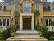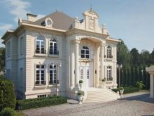 يمكنك أيضًا إلقاء نظرة فاحصة على كلاسيكي نمط. نموذجي بالنسبة له منازل مستطيلة أو مربعة. يُسمح بترتيب القواعد الوظيفية. بالإضافة إلى الجص ، يمكن استخدام الطوب المواجه للزخرفة. تم تقليم الطبقة السفلية في الغالب بالحجر على مستوى الأرض وأعلى قليلاً.
