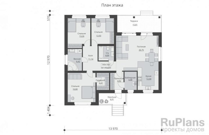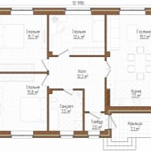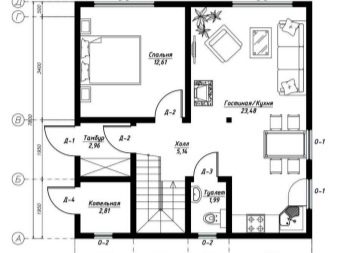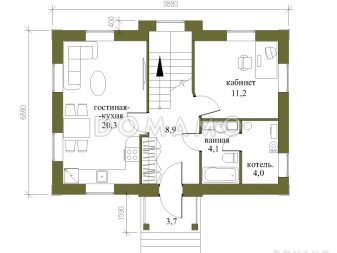 في هذه الحالة ، هناك مساحة أكبر بكثير لتجسيد أفكارك. على سبيل المثال ، في أحد الخيارات ، تصل مساحة الشرفة إلى 3.7 “مربعات”. من هناك ، يدخل من يدخل الدهليز الذي تبلغ مساحته 9 أمتار مربعة تقريبًا. م ومن الردهة يمكنك الذهاب إلى المكتب والحمام ومنطقة الضيوف في المطبخ. توجد أيضًا غرفة مرجل في الطابق الأول من هذا المبنى..