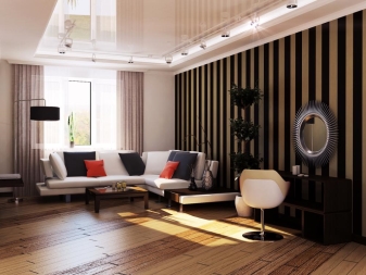 تبدو الجدران المضيئة مفيدة في مساحة صغيرة. يتم لصقها بورق حائط بنمط صغير أو مزينة بالجص. الرسومات الكبيرة والضخمة غير مناسبة هنا ، لأنها تضيق الغرفة بصريًا. تبدو الجدران المزينة بخطوط رأسية أو أفقية لائقة. بمساعدتهم ، يمكنك إما توسيع الغرفة بصريًا أو رفع الأسقف..