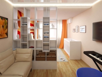خصوصية مساحة 18 م 2 هي أنه يمكن توسيعها بصريًا إذا لجأنا إلى بعض الحيل. غالبًا ما يتم دمجها مع شرفة أو غرفة تخزين أو مقسمة إلى مناطق باستخدام أقسام. يعتمد تصميم الغرفة والغرض منها على توصيات تصميمها.