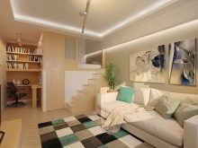 في غرفة المشي المستطيلة ، تحتاج إلى تثبيت حد أدنى من الأثاث ووضعه بالقرب من الجدران. إذا كانت مخصصة لشاب أو شاب بالغ ، فيمكنك قصر نفسك على أريكة قابلة للتحويل وخزانة ملابس ومكتب مع أرفف. في شقة من غرفة واحدة من المهم تنظيم مناطق المعيشة والنوم حتى لا يتدخلوا مع بعضهم البعض. إذا أمكن ، يمكنك الجمع بين غرفة وشرفة للحصول على مساحة أكثر قابلية للاستخدام..