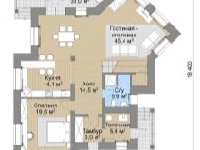 وهنا منزل من طابق واحد تبلغ مساحته 300 مربع. يبدو المبنى قاسيًا بعض الشيء وهو أكثر ملاءمة للأشخاص الذين يخططون للتو لتكوين أسرهم الخاصة. يمكن تغيير واجهة المبنى في المستقبل..