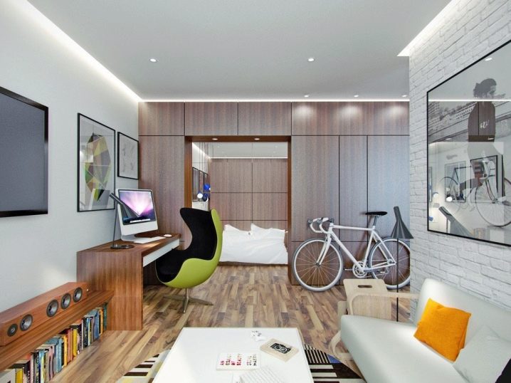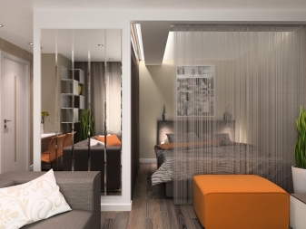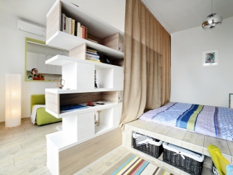 فيما يلي بعض الأمثلة على الحلول الأصلية عند تزيين شقة من غرفة واحدة في لقطة صغيرة.
