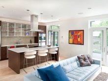 - يمكن الجمع بين الحمام والمطبخ ، المعزولين عادة عن غرفة المعيشة ، مع بقية الشقة بطريقة تزيد من حجم المنطقة القابلة للاستخدام وتقليل الحمل الوظيفي على كل منطقة من المناطق.