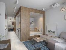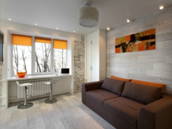 على الرغم من حقيقة أن الشقق المكونة من غرفة واحدة في منطقة صغيرة هي من نفس النوع تمامًا ، يمكن جعل كل منها نوعًا من المشاريع الفريدة لإقامة مريحة.