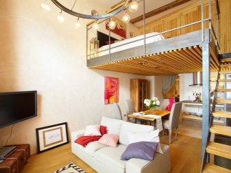 إذا كان ارتفاع الجدران يسمح لك باستخدام المساحة العلوية أسفل السقف ، فتأكد من الحصول على طابق نصفي. هذا ليس مستودعًا للأشياء غير الضرورية التي من المؤسف التخلص منها ، ولكنه مساحة إضافية مفيدة للخزائن والمنافذ وحتى أماكن النوم. وبعد ذلك سيصبح الاستوديو الخاص بك مريحًا حقًا ، وستكون جميع عناصره حديثة ومتعددة الوظائف..
