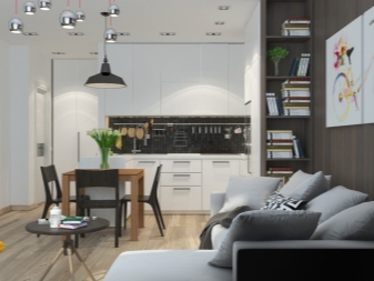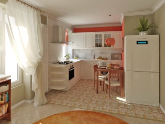 في هذه الحالة ، يوصى غالبًا بتخصيص مساحة إضافية لمكان العمل أو منطقة المعيشة ؛ هذا الأخير صحيح بشكل خاص إذا تم دمج الشرفة أو لوجيا مع المطبخ.