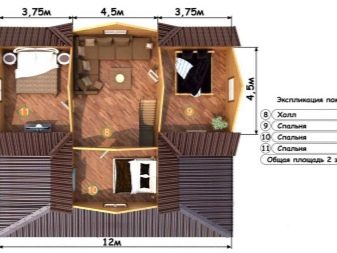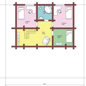 تقع غرف النوم في مكان مناسب في الطابق الثاني أو العلية ، حيث يتم إنشاء منطقة خاصة هادئة. الطابق الأول مخصص للأماكن العامة. إذا كان الكوخ مبنيًا على نفس المستوى ، فسيكون من الأسهل العيش فيه ، وجميع الغرف على مسافة قريبة ، دون الصعود إلى الطوابق.
