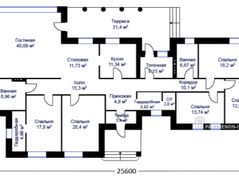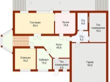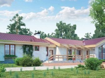 من المنطقي تضمين الحد الأدنى من مجموعة المباني في المشاريع المكونة من طابق واحد ، وإلا فإن المنزل سيشغل مساحة كبيرة جدًا على الموقع. ولكن إذا سمحت المنطقة بذلك ، فمن الممكن تمامًا إضافة مرآب أو صالة ألعاب رياضية على سبيل المثال..
