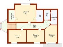 بالإضافة إلى 5 غرف نوم ، يجب أن يحتوي المنزل على غرفة مشتركة كبيرة (غرفة معيشة) ومطبخ وحمام ومرحاض وغرفة مرجل. هذا هو الحد الأدنى المحدد لهذا النوع من المباني.. يمكن للعميل إضافة أماكن أخرى بناءً على احتياجاته الخاصة.. تكتمل المشاريع بغرفة طعام ودراسة وغرفة ألعاب وحديقة شتوية. يمكنك أيضًا تخطيط المباني غير السكنية ، ووضعها تحت نفس سقف المنزل – ورشة عمل ، مغسلة ، مرآب ، صالة ألعاب رياضية ، حمام سباحة ، مجمع حمام. تزيد كل غرفة إضافية من المساحة الإجمالية للمبنى.