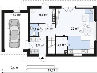 إن العثور على مخطط جاهز لمنزل بحجم 6 × 10 مع مرآب على الشبكة يكاد يكون غير واقعي. كل هذه الحلول الجاهزة مصممة بشكل فريد لمساحة أكبر بكثير. لذلك ، سيتعين عليك إعداد مشروع ورسومات بشكل فردي. أو اطلبها من مطورين محترفين.