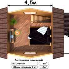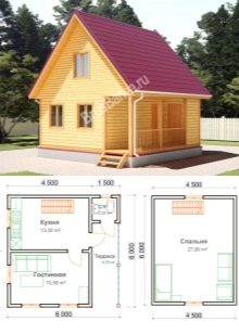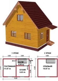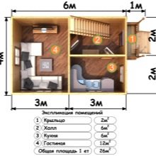يمكن أن يحتوي المنزل ذو المعلمات 6 × 4 أمتار على طابق واحد أو طابقين. يحب العديد من مالكي المواقع الخيار الثاني أكثر ، لأن تصميمه يوفر مساحة أكبر للخيال.. عادة ما يتم وضع علية صغيرة في الطابق الثاني. يجب أن يؤدي الدرج الجميل إلى الطابق الثاني..