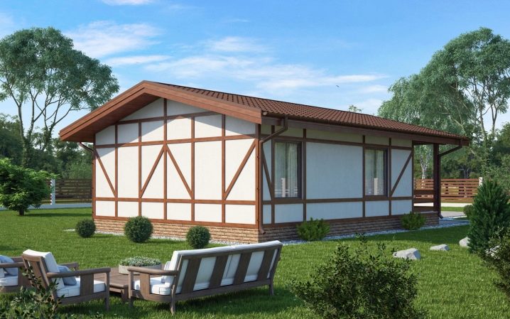 يفضل بناء منزل صغير 4 × 6 بأسلوب نصف خشبي لمساحة 6 أفدنة. يشبه هذا المبنى كوخًا ألمانيًا أنيقًا. مادة المنزل 6 × 4 عبارة عن خشب.