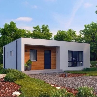 يمكن بناء منزل من طابق واحد 6 × 4 بهذا النمط في موقع مبنى قديم باستخدام كتل الخرسانة الغازية والرغوية.