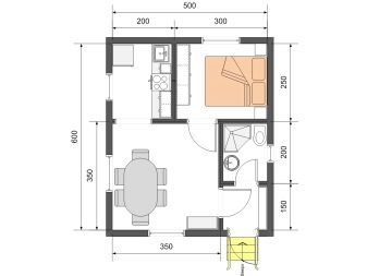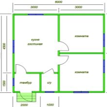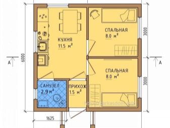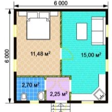 يبدو مخطط المنزل على الخطة على الأرجح كما يلي: غرفة نوم ، مطبخ به غرفة معيشة صغيرة ، حمام ، دهليز ، غرفة تقنية. هذا الأخير يخدم في غرفة المرجل وغرفة الضخ ، والتي بدونها لم يكن المنزل المستقل تمامًا ليقوم بذلك. خلاف ذلك ، سيكون مبنى بدون وسائل راحة ، حيث لا يوجد على الأقل تدفئة من الخشب (الوقود الصلب). هنا لا غنى عن بناء العلية أو الطابق الثاني الكامل. يمكن إخراج غرفة المرجل وغرفة الضخ إلى الطابق السفلي ، ثم يتم إخلاء مساحة تصل إلى 5 م 2 في الطابق الأرضي. لذلك ، فإن أحد الخيارات لخطة منزل تبلغ مساحتها 36 مترًا مربعًا هو الترتيب التالي للمباني:
