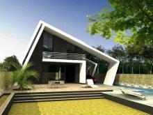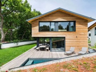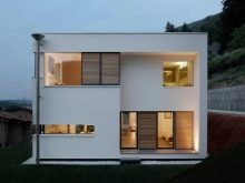 منزل في الاسلوب عصري يبدو أيضا مقتضبا. الزخارف مقبولة ، لكن يجب أن تكون مضغوطة وخطوط متدفقة. لتحقيق تأثير “القصر” ، تحتاج إلى استخدام درابزين فولاذي مطروق. يوصى أيضًا بجعل الملامح الخارجية ناعمة..