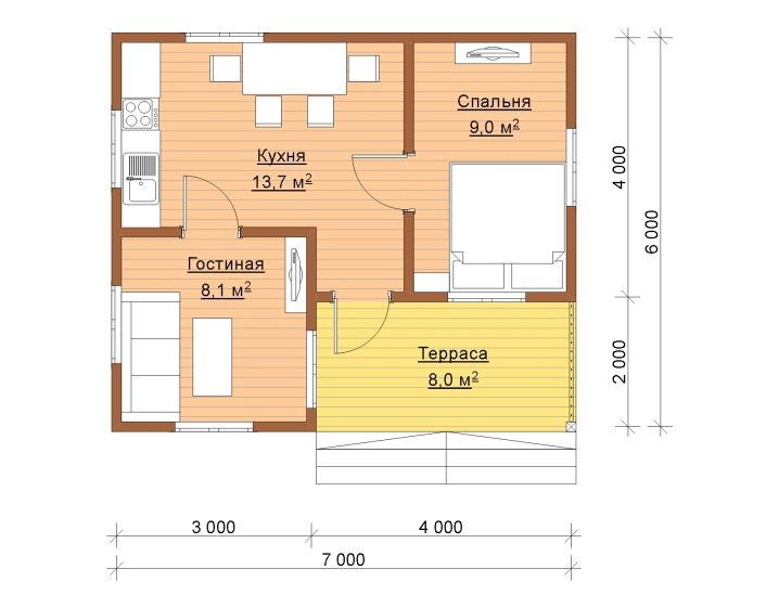 عند الحديث عن منازل من طابق واحد تبلغ مساحتها 6 في 7 أمتار ، يجب أن تشير إلى ذلك على الفور يخسرون في طابقين من حيث المساحة الإجمالية ، من حيث حجم الغرف الفردية. ومع ذلك ، فإن هذا يقابله إلى حد كبير رفض ترتيب الدرج ، مما يسبب الكثير من الإزعاج ويأخذ مساحة إضافية على مستويين في وقت واحد.. تكلفة المتر المربع أعلى ، ويجب أيضًا عزل الأرضية ، ويجب عمل السقف بعناية أكبر.