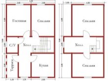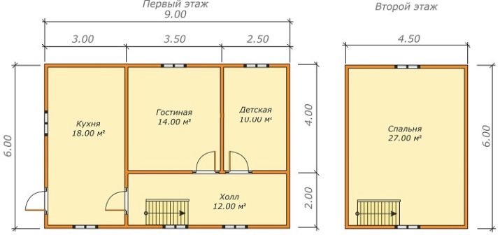 ستكون مشاريع المنازل المكونة من طابقين والتي تبلغ مساحتها 6 في 9 أمتار موضع اهتمام العائلات التي لديها عدد قليل من الناس. يمكن لعائلة مكونة من 3-5 أشخاص الإقامة بسهولة في مثل هذه المنازل ، وفي نفس الوقت سيكون لكل منهم غرفته الخاصة..