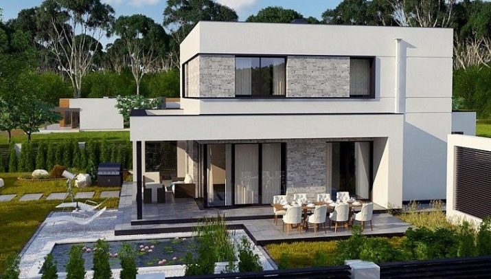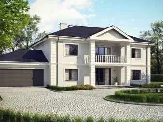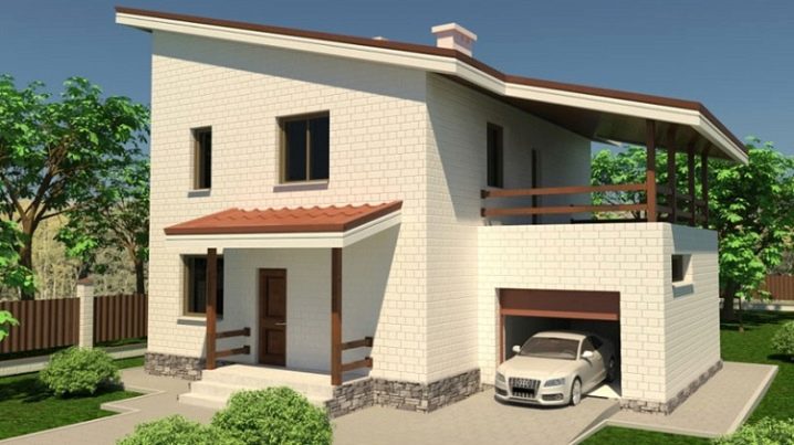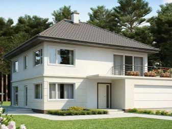 في كثير من الأحيان ، يتم بناء المنازل على الفور مع مرآب ، ولا يتم وضعها بشكل منفصل عن المبنى ، ولكن في الطابق الأرضي مباشرة. لهذا الغرض ، تم تخصيص نصف الطابق الأول للجراج. يشمل الباقي عادة غرفة معيشة ومطبخ فسيحة. مع هذا الخيار ، يحتوي الطابق الثاني على غرف نوم..