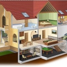 لكن هذا ليس الخيار الوحيد.. كل هذا يتوقف على احتياجات ورغبات الملاك الذين لديهم طابقين تحت تصرفهم.. يمكن أن يتكون المنزل من مبنى خاص بالطفل والبالغ. ثم سوف يستوعب الطابق الأول بشكل مثالي المطبخ وغرفة المعيشة وغرفة نوم البالغين ، وفي الثاني قد يكون هناك غرف نوم للأطفال وربما غرفة ألعاب أو مكتبة..