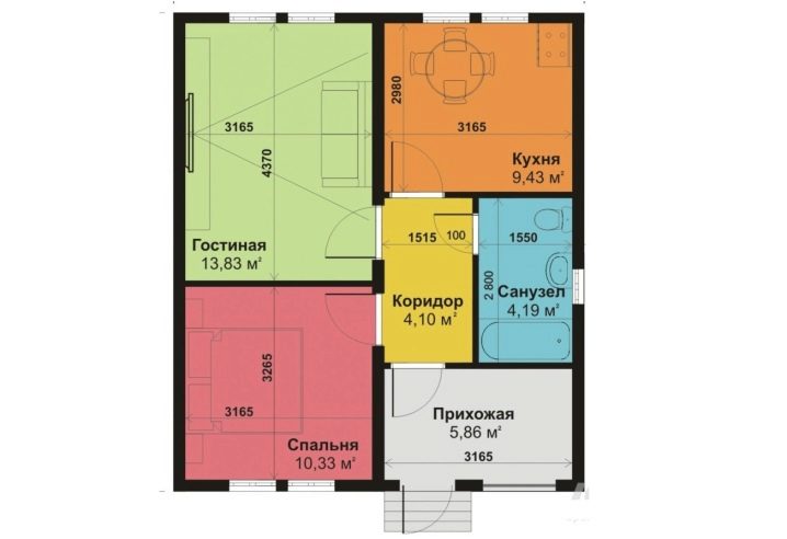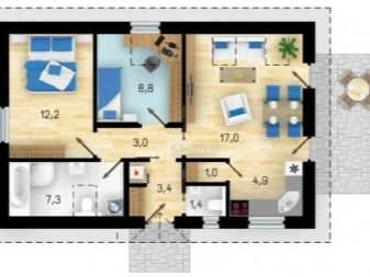 لكن هذا لا يعني أن المنازل المكونة من طابق واحد تتكون من مزايا فقط. غرف التخطيط صعبة.. تسمح لك مساحة 60 مترًا مربعًا بإدارة قطع الأراضي الصغيرة بثقة أو – ما هو نفسه – في قطعة أرض صغيرة يمكنك بناء مثل هذا المنزل بأمان.