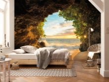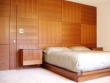 ينصح بتشطيب جدران غرفة النوم بألواح خشبية.. غالبًا ما تكون الأرضية مغطاة بالسجاد أو اللامينيت. لجعل الغرفة تبدو أكبر ، يُنصح باستخدام ورق حائط للصور بمنظور.