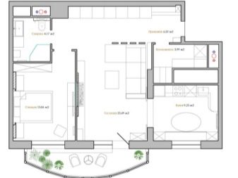 على سبيل المثال ، يمكن أن تكون عائلة شابة لديها طفل. ومع ذلك ، قد لا يكون هناك رواق. عند دخولك إلى الشقة ، ستجد نفسك على الفور في غرفة المعيشة أو القاعة. بالإضافة إلى ذلك ، يمكن دمج القاعة (مع منطقة جلوس) مع مطبخ.