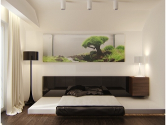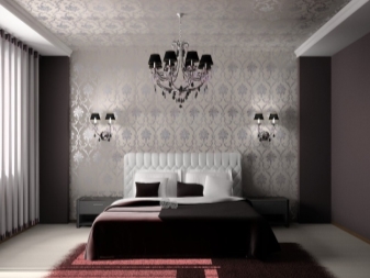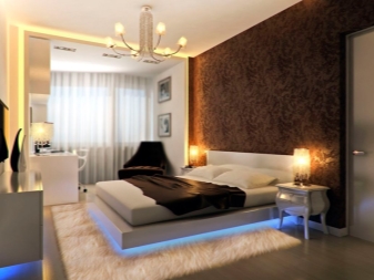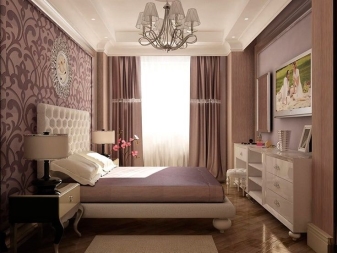 أما بالنسبة للإضاءة ، فستعتمد على الأسلوب. ومع ذلك ، فإن الشمعدانات بجانب السرير دائمًا ما تكون رائجة ، ولم توقف الإضاءة الموضعية الناعمة أي شخص حتى الآن. يجب اختيار الستائر والمنسوجات المختلفة والسجاد والإكسسوارات بناءً على الأسلوب الذي تزين به الشقة. ومع ذلك ، إذا لم تكن الغرفة كبيرة جدًا ، فمن المنطقي عدم اختيار الألواح الداكنة كخلفية وأرضيات ، وإلا فإنك تخاطر بالحصول على غرفة نوم قاتمة للغاية ستكون غير مريحة فيها.