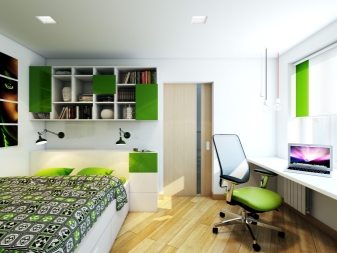 يمكن أن يكون السرير مفردًا أو بطابقين لطفلين. بالإضافة إلى ذلك ، أصبح السرير العلوي شائعًا الآن للشراء. الخزانة ومنطقة العمل مطلوبة أيضًا. من المستحسن عدم وجود نقص في الإضاءة في الغرفة. من المهم جدًا اختيار مكتب كتابة مريح لطفلك..