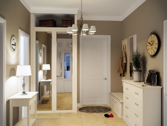 كقاعدة عامة ، هذه غرفة صغيرة ، وتقع مباشرة بعد دخول الشقة. حاول ألا تشوش هذه الغرفة لأنها صغيرة بالفعل. من المناسب وضع كل الضروريات في الرواق.