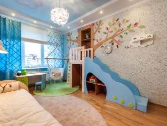 قد تختلف غرفة الأطفال عن المساحة الداخلية العامة للشقة ، خاصةً إذا كان الطفل صغيرًا. كديكور ، يمكن استخدام خلفيات ذات طابع خاص ، على سبيل المثال ، مع أميرات للفتيات أو سيارات للأولاد. يمكن أن تكون الأرضيات أي شيء ، ولكن السجاد مرحب به.