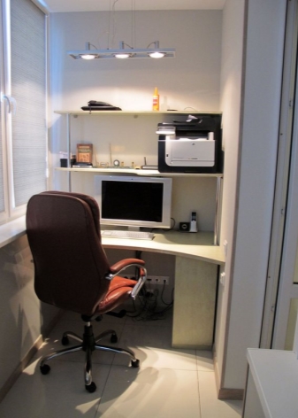 - إذا كانت الشقة لا تحتوي على مساحة كافية لترتيب مكان العمل أو كنت بحاجة إلى مكتب منفصل للعمل حتى تتمكن من التركيز ، فيمكن تنظيم كل شيء على الشرفة. الشيء الرئيسي هو أنه معزول..