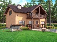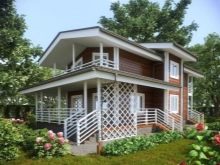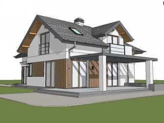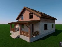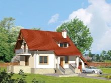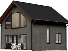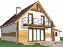 منزل من طابق واحد ونصف مناسب أيضًا كخيار كوخ صيفي. عادة ، في مثل هذه المشاريع ، يوجد استوديو كبير أدناه – هذه مساحة مشتركة تشمل منطقة لتناول الطعام ومكانًا للاسترخاء. أيضا في الطابق الأرضي قد يكون هناك ساونا وحمام. العلية مخصصة لغرفة النوم.