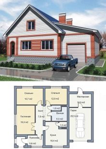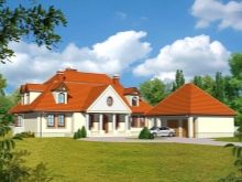 يوفر تصميم بعض البيوت الريفية غرفة مناسبة تحت نفس سقف المنزل. يتيح لك ذلك توفير القليل من المواد التي يتم استهلاكها أثناء البناء ، كما أنه من المريح جدًا أنه يمكنك تثبيت باب والدخول على الفور إلى المرآب من مساحة المعيشة دون الخروج.