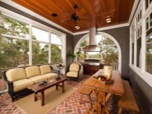 إذا كنت تريد مساحة إضافية للاستخدام على مدار العام ، فمن الأفضل التفكير في شرفة مع موقد.. إنه مغلق تمامًا ومزجج ، لذلك حتى في الطقس البارد سيكون من الممكن البقاء هناك..