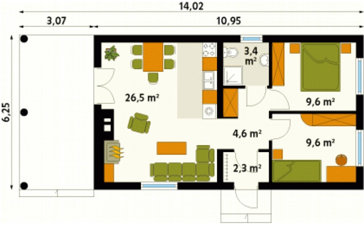 تجدر الإشارة إلى أنه إذا قارنا منزلًا صغيرًا وشقة ، فإن الأول يساوي تقريبًا شقة من غرفة واحدة ، سواء في المساحة أو في التخطيط.