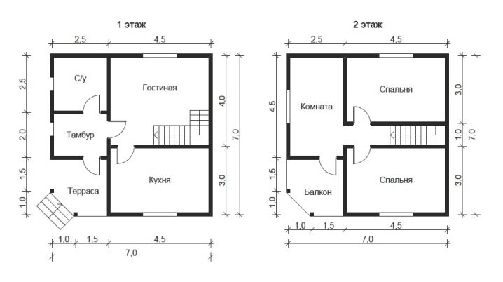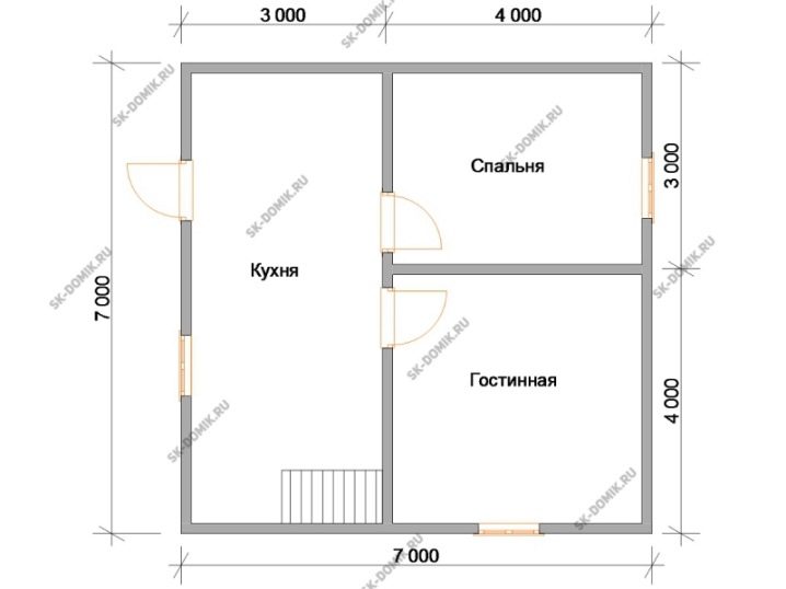 يناسب المبنى المكون من طابق واحد كبار السن أو عائلة صغيرة بشكل أفضل.. ومع ذلك ، حتى مع وجود ميزانية محدودة ، تسمح لك العلية بوضع أماكن إضافية. إذا خصصت مبلغًا كبيرًا وقمت ببناء طابق ثانٍ بالحجم الكامل ، يمكنك ضمان مستوى خاص من الراحة. تجبرك مساحة 7 × 7 على توخي الحذر الشديد في تحديد عدد الغرف والغرض منها. تم وضع هذه النقطة جيدًا في الخطط القياسية ، وليس من الضروري تغييرها دون مبرر بالغ الأهمية..