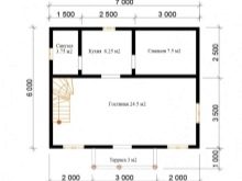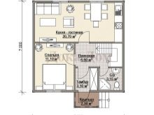 في الواقع ، تختلف المنازل ذات التراسات والشرفات قليلاً من حيث التخطيط. كل ما هو مطلوب هو استبدال المنطقة المفتوحة بامتداد صغير مغطى أثناء البناء. حتى الأساس لذلك ليس مطلوبًا في كثير من الأحيان ، وحتى بعد ذلك يتم استخدام أبسط الهياكل الداعمة.. يحتوي أحد الخيارات الممكنة لمنزل ريفي من طابق واحد على: