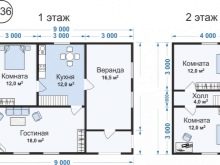 - من بين المشاريع التي تحتوي على تراس ، هناك العديد من المنازل المكونة من طابق واحد ونصف وطابقين. يتميز كوخ الإطار AS-1629F بالأصالة والراحة ، مع شرفات مدمجة متوفرة على كلا الجانبين. يوضح الرسم البياني أن مساحة كل من المدرجات 6.3 متر مربع. يشغل معظم الطابق الأرضي غرفة معيشة ومطبخ. يوجد في الطابق العلوي ثلاث غرف نوم وحمام وصالة.