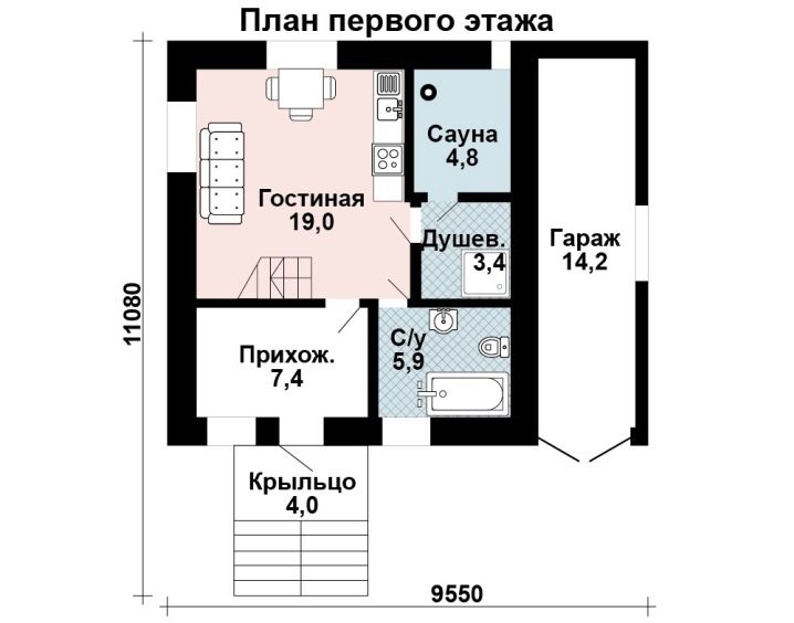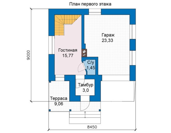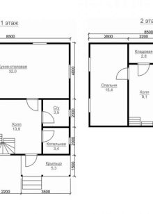 تتيح لك المنازل التي تبلغ مساحتها 8 في 9 أمتار استيعاب العديد من المباني الإضافية ، بالإضافة إلى المباني الرئيسية. على سبيل المثال ، يتم استكمال المباني المكونة من طابقين بساونا أو مرآب.. من بين حلول التخطيط مع غرفة لسيارة ، يمكن للجميع العثور على خيار مناسب لأنفسهم..