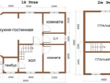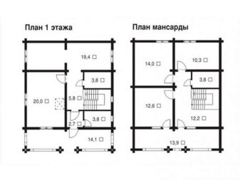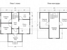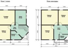- خطة البيت DO-017 مصنوعة من جذوع الأشجار المستديرة مع العلية مثيرة للاهتمام للسقف المعقد ، مما يعطي المبنى مظهرًا رائعًا. يوجد في الطابق الأرضي مطبخ مشترك مع غرفة معيشة ، وحمام ، وقاعة ، وردهة. الطابق العلوي محجوز لغرفتي نوم وحمام آخر.