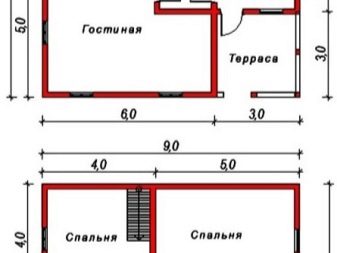يسمح لك المنزل العملي 8×9 مع أرضية العلية بتوسيع المنطقة. غالبًا ما يكون الطابق الرئيسي مخصصًا للأماكن العامة. مباشرة في العلية توجد مساحة لغرفة نوم واحدة أو غرفتي نوم. تجدر الإشارة إلى أن بعض حلول التخطيط يمكن أن تستوعب حتى ثلاث غرف نوم وحمامين.. يمكنك استكمال المشاريع مع علية مع شرفة أو نافذة كبيرة أو تراس.