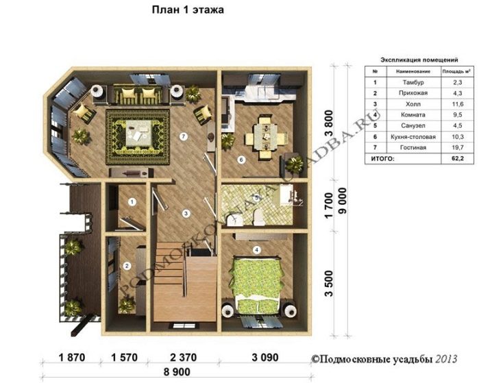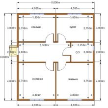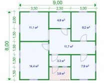 عندما تكون المباني في مستوطنات الضواحي كثيفة للغاية ، فإن الأكواخ ذات أبعاد 8 في 9 أمتار هي الأكثر شيوعًا. بادئ ذي بدء ، فهي جذابة لأبعادها المدمجة ، مما يسمح لك بالتوفير في بنائها.. ميزة أخرى لطيفة لهذه المنازل هي تصميمها الوظيفي ، وهو مثالي لحياة مريحة لعائلة متوسطة..