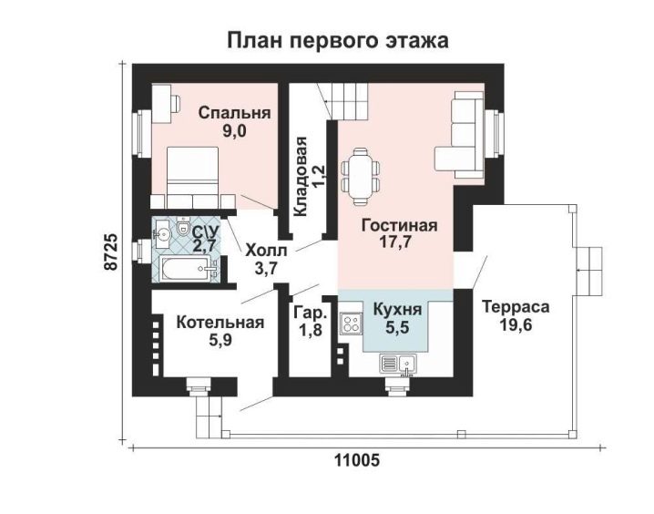 على سبيل المثال, يوصى بأن يكون المطبخ أقرب إلى المدخل. في نفس الوقت ، يجب أن يكون هناك حمام وغرفة مرجل بجانبها. إذا كان التصميم يوفر درجًا ، فيجب وضعه بشكل منطقي من أجل استخدام المنطقة بشكل أفضل.