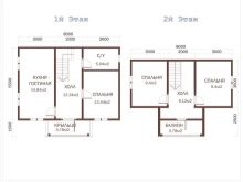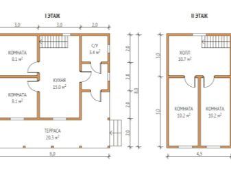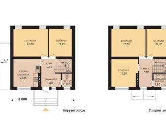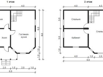 إذا كنت ترغب في ذلك ، يمكنك اختيار مشروع مع دراسة وغرفة للأطفال. في الوقت نفسه ، يمكن أن تتكون المنازل من طابقين ، وسيحتوي الطابق الأول أيضًا على غرفة معيشة وتناول طعام ، وغرفة مطبخ ، وقاعة صغيرة. في المستوى الثاني ، بالإضافة إلى المكتب ، يمكن أن يكون هناك أيضًا غرفة نوم واحدة وشرفة.