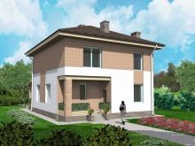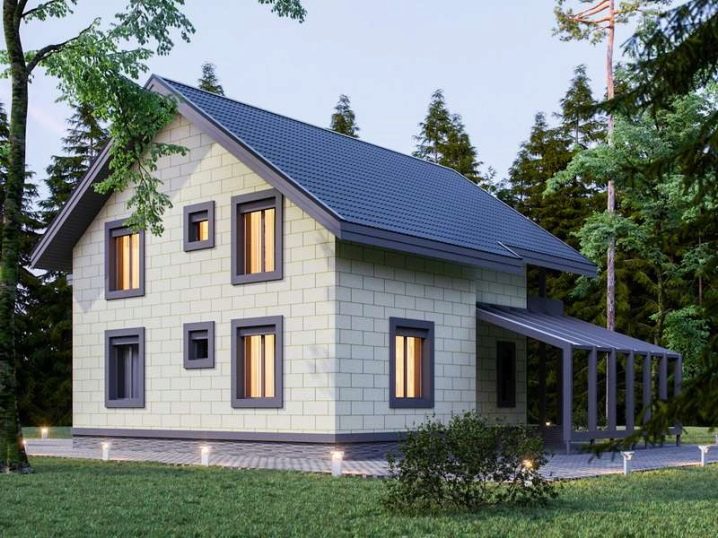 - يمكنك أيضًا اختيار مشروع لمثل هذا المنزل المكون من طابقين.. في الطبقة الأولى ، غالبًا ما توجد غرفة معيشة فسيحة ، وغرفة مطبخ – طعام ، وقاعة ، وغرف مساعدة (غرفة غسيل ، ومخزن) ، وحمام. في المستوى الثاني ، يمكنك تنظيم غرفة نوم واحدة أو غرفتي نوم وحضانة وحمام واحد أيضًا. يمكن تزيين واجهة المبنى بدرجات اللون الرمادي الفاتح. في هذه الحالة ، يجب جعل السقف أغمق. تتناسب إطارات النوافذ بشكل أفضل مع لون السقف.