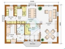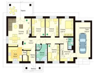 لذلك ، دعونا ننظر أولاً إلى مشاريع الهياكل المكونة من طابق واحد على أنها أبسط وأكثر اقتصادا. سيشمل أحد هذه المخططات قبوًا واسعًا وتراسًا جميلًا.. في الخارج ، سيبدو هذا المبنى وكأنه منزل مربع عادي ، ولكن مع إضافة التراس نفسه. إذا كنت تعمل على التصميم ، فسيكون مظهر هذا المنزل جيدًا جدًا. يوجد بداخل هذا المسكن 4 غرف معيشة ، منها 3 غرف نوم.